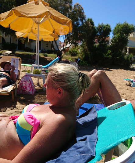 na miejscu, w miejscach widocznych spod kostiumów kąpielowych. Leniwie zalegamy