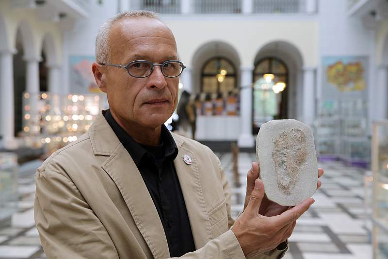 spacerował nasz ewentualny praprzodek, którego ślady odkrył dr Gerard Gierliński.