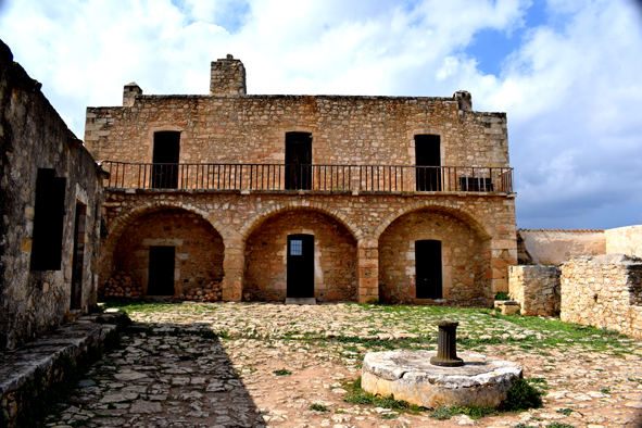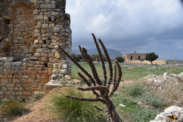 Pewno mi to w niebie zostanie zapisane jako zasługa, to poświęcenie się, ale na wszelki wypadek idziemy załatwić tę sprawę za pośrednictwem świętego Jana Teologa, jak tu nazywa się św. Jana Apostoła i Ewangelistę, ulubionego ucznia Jezusa. Jego kościół, wybudowany w XIV wieku wznosi się na niewielkiej skarpie po drugiej stronie szosy. Po schodach dochodzimy do placyku przed świątynią, wita nas ładna i skromna dzwonnica, w środku są dość zniszczone freski – mocno prymitywne w stosunku do tych wymuskanych malowideł, które zwykle widuje się w nowoczesnych greckich kościołach. Obok kościoła można obejrzeć fragmentu tureckiego akweduktu i pozostałości starego młyna. A wszystko to w otoczeniu pięknych drzew cytrusowych.