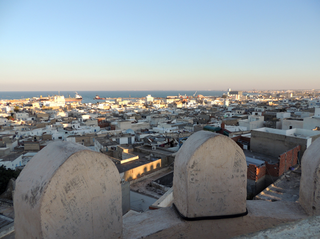 Po południu piechotką do miasta, trasą przez park miejski, koło dworca kolejowego i autobusowego na medinę. Wielki meczet już zamknięty (giaurzy mogą go oglądać w środku tylko do 15-tej), ale zwiedzamy miejscowy ribat. Znów trzeba się przeciwstawiać popularnemu błędowi, powtarzanemu przez prawie wszystkie polskie przewodniki, Wikipedię i inne źródła wiedzy i "wiedzy", utrzymujące, że ribat to "ufortyfikowany klasztor islamski". Otóż nie istnieją w islamie klasztory w takim rozumieniu, jakie obowiązuje w chrześcijaństwie. Rozstrzygnijmy to w oparciu o Święty Koran, który w Surze Al-Hadid - LVII, werset 27, mówi o ludziach, którzy praktykują stan zakonny, choć Allah im go nie przepisał. W komentarzu powołującym się na tradycję islamską czytamy: La rahbanijja fi'l-islam, czyli nie ma stanu zakonnego w islamie. Natomiast - zwłaszcza w odłamach sufickich - pojawiały się bractwa świeckie, praktykujące wspólne modły, a nawet mistycyzm (znani choćby tzw. tańczący derwisze). Byli także pustelnicy i inni "święci mężowie", oddający się modlitwie i kontemplacji - choćby otoczeni swojego rodzaju kultem marabuci, nauczyciele islamu w krajach Magrebu, wokół których często gromadzili się uczniowie i wyznawcy, niekiedy uzbrojeni. Takie są początki ribatów. Samo słowo po arabsku oznacza schronienie, ostoję, nawet gościniec. Ribaty, które jako pierwsze zaczęto budować właśnie w północnej Afryce od IX w. gromadziły zatem początkowo świeckich obrońców islamu, także obrońców muzułmanów, potem ochotników i zaciężnych żołnierzy broniących ważnych miejscowości lub strategicznych czy handlowych dróg.