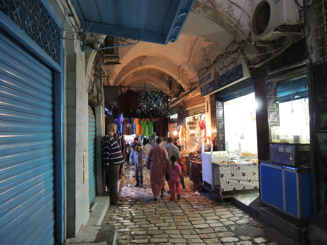 Potem łazimy po medinie, coraz wyżej i wyżej, aż znajdujemy prywatne muzeum w Domu Bogatego Urzędnika - Dar Essid. Świetnie urządzone, w charakterze niewielkiego pałacyku z ładnym wnętrzem z XIX i XX w. , z niewielką wieżą, z której roztacza się rozległy widok na medinę i port. Powrót połączony z zakupami.