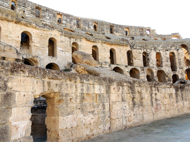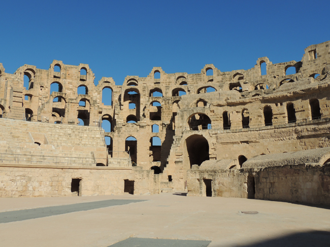 Stan zachowania afrykańskiego Koloseum jest znacznie lepszy od jego rzymskiego starszego brata, choć i tu zniszczenia były poważne, kiedy Arabowie rozpoczęli jego dewastację, pozyskując materiał budowlany na kolejne meczety. |