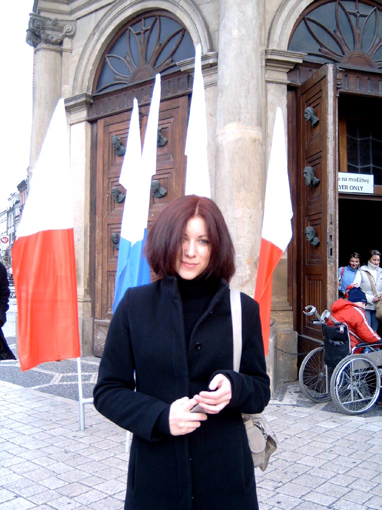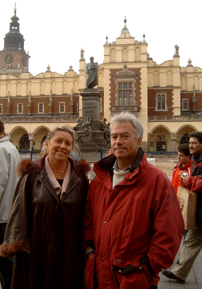 Lidka i Maciej przed rzeźbą Igora Mitoraja na Rynku |