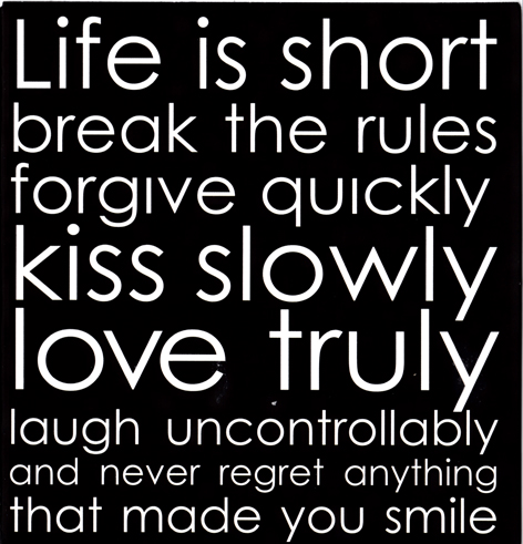 Najfajniejsze życzenia dostałem od przyjaciółki ze Szwecji. Osobistą treść pomijam, ale i sama karta życzeniowa była świetna i właśnie ją zawieszam nie tylko tu, ale i w domu, jak zespół ważnych mott... (nie mam pewności, czy to tak się odmienia?). Kto nie zna angielskiego, niech się uczy, to się bardzo w życiu przydaje.
