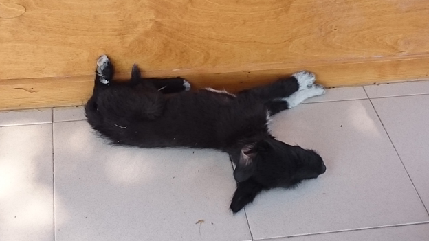 nawet jakiś mały piesek spokojnie śpi przed kontuarem, nie niepokojony przez