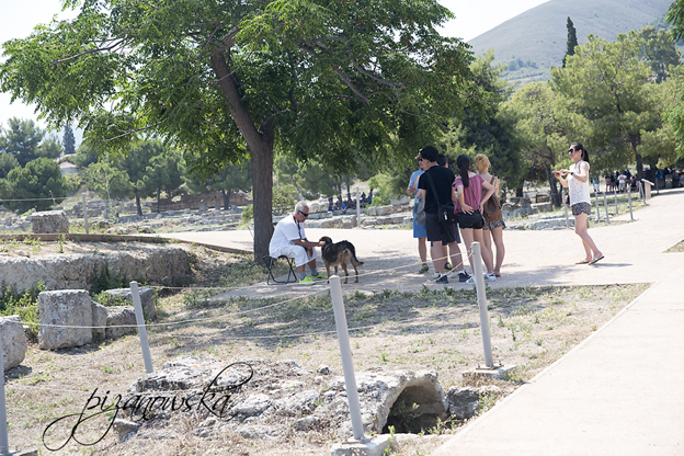 Siadam na krzesełku świątyni Apolla i po chwili przebiega koło mnie mały piesek, ten spod kasy, a potem spokojnie podchodzi jego mama, dość starszawa suka. Kalimera, mówię, chaire! Macha ogonem, wiadomo, grecki pies. Ale nie umiem rozmawiać po grecku, zwłaszcza z psem. C'mon, sit down - próbuję po angielsku. Siada, widać oblatana w kontaktach z turystami. Chodź tu, nie bój się - mówię po polsku. Podchodzi, podstawia grzbiet do głaskania. Z psem człowiek zawsze się dogada. Wiadomo, to przecież nie człowiek.