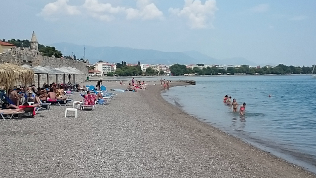 - plaża to wąziutki i dość brudny pasek ciemnawego żwirku, obok teren dmuchanych