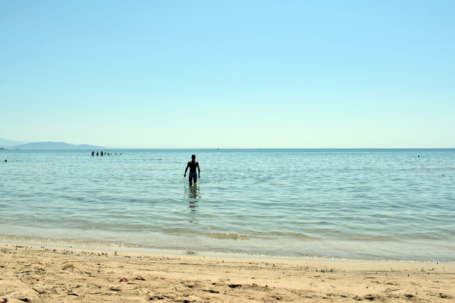 Wszystko to prawda: plaża przy ulicy Leoforos Artemidos jest rzeczywiście piękna, ma blisko 3 kilometry długości, parking tuż obok, kilka ośrodków z parasolkami, piasek brązowy, ze żwirkiem. Spory wiaterek nadmuchuje Renatce materac w kształcie łódeczki, ja wyciągam się na leżaku i myślę o miejscu, w którym się znaleźliśmy. Naprzeciw leży Eubea, i samo to już wywołuje refleksje, podobnie jak nazwa miejscowości, której patronką jest jedna z najbardziej niesympatycznych bogiń greckich, dziwaczka i okrutnica.