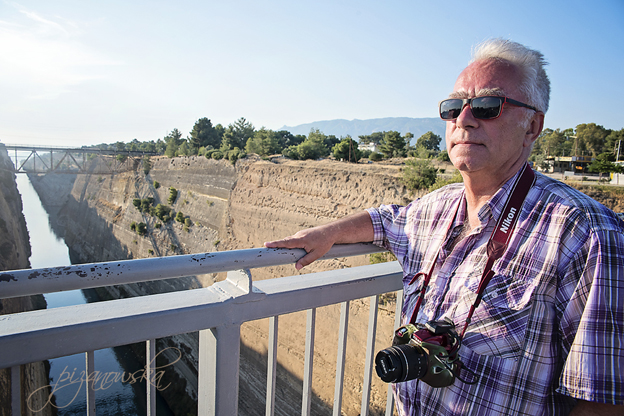 Mijamy Pireus od północy i tylko z daleka widzimy wielką wyspę Salaminę, koło której flota grecka w -480 r. pod wodzą Temistoklesa pokonała Persów, nie dopuszczając do zmiany biegu dziejów Europy. Szosa nadmorska prowadzi nas teraz koło Zatoki Eleuzyjskiej, nad którą (w mieście Elefsina, czyli właśnie Eleuzis) znajdują się największe greckie rafinerie naftowe. Jest już dość późno - ale na szczęście jest już prawie lato, najdłuższe dni w roku, więc gdy dojeżdżamy do Kanału Korynckiego jest jeszcze zupełnie widno. Zatrzymujemy samochód po drugiej stronie, na dużym parkingu przy moście i wracamy, by z bliska zobaczyć miejsce, gdzie kończy się Półwysep Bałkański i zaczyna Peloponez: największa wyspa Grecji.
