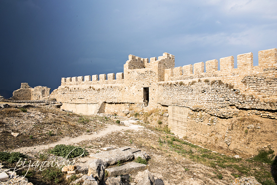 o kilometr cytadeli z epoki mykeńskiej. Twierdza była prawdopodobnie wysuniętym