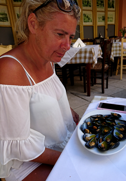 plażę. Kolacja z widokiem na wyspę św. Teodory i smutna świadomość, że lada