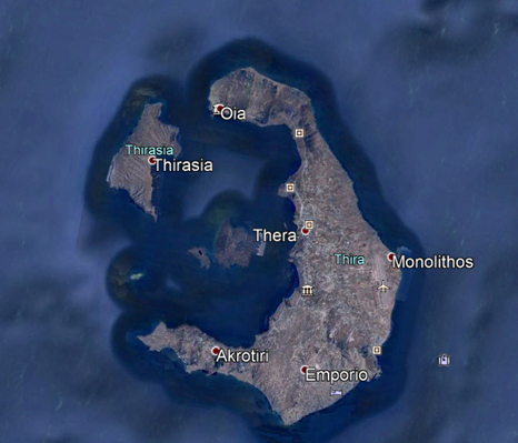 jak na mapie Google’a cel naszej dzisiejszej wyprawy – wyspę Santorini. Z