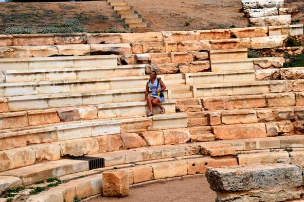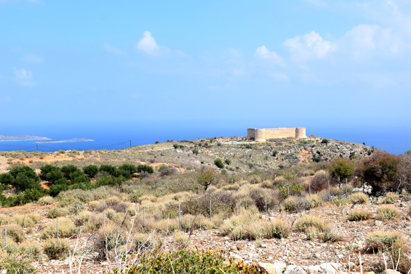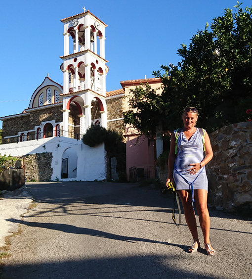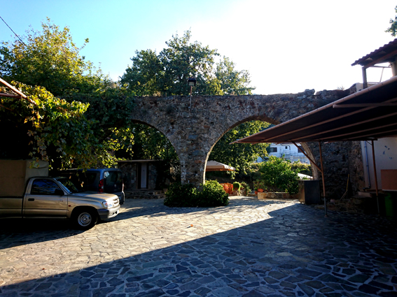 Pewno mi to w niebie zostanie zapisane jako zasługa, to poświęcenie się, ale na wszelki wypadek idziemy załatwić tę sprawę za pośrednictwem świętego Jana Teologa, jak tu nazywa się św. Jana Apostoła i Ewangelistę, ulubionego ucznia Jezusa. Jego kościół, wybudowany w XIV wieku wznosi się na niewielkiej skarpie po drugiej stronie szosy. Po schodach dochodzimy do placyku przed świątynią, wita nas ładna i skromna dzwonnica, w środku są dość zniszczone freski – mocno prymitywne w stosunku do tych wymuskanych malowideł, które zwykle widuje się w nowoczesnych greckich kościołach. Obok kościoła można obejrzeć fragmentu tureckiego akweduktu i pozostałości starego młyna. A wszystko to w otoczeniu pięknych drzew cytrusowych.