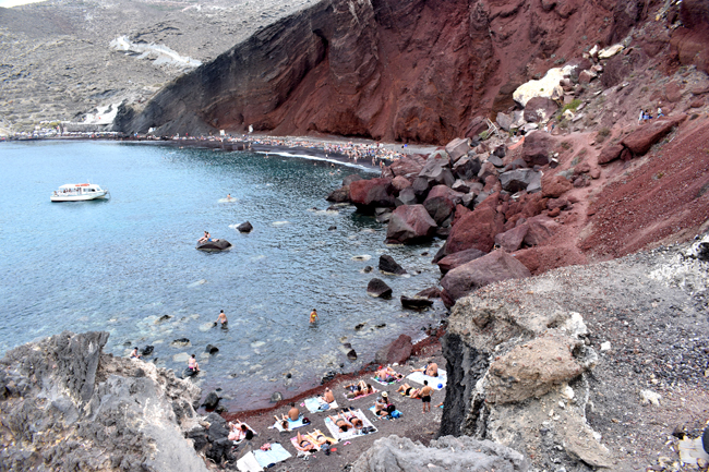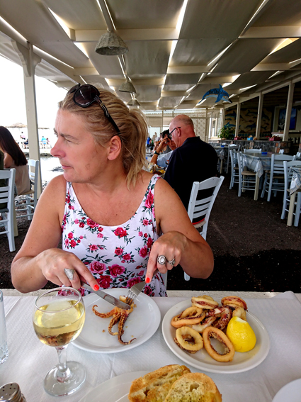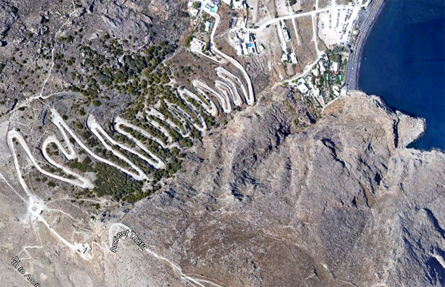 ciasne uliczki Kamari i kierujemy się powoli na południe wyspy. Naszym celem