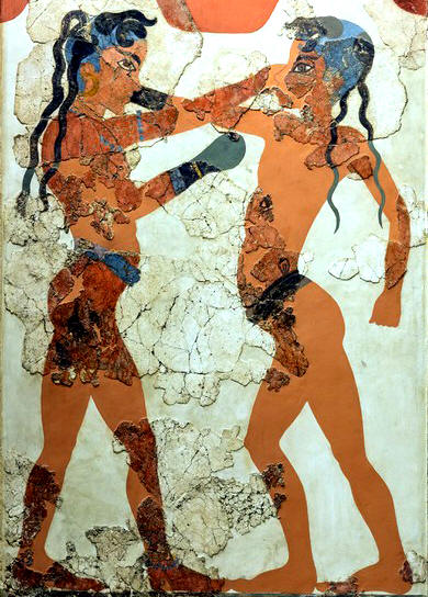 niosący ryby, chłopcy ćwiczący walkę bokserską (tylko na prawych dłoniach mają
