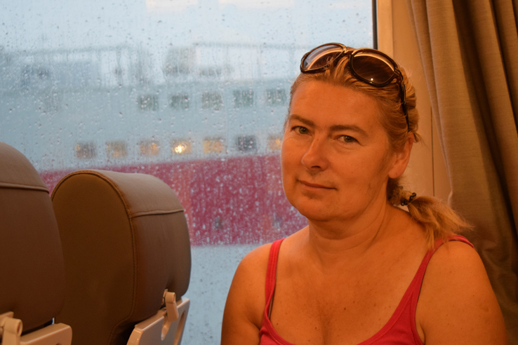 osób statek to nie kajak pana Doby. Wyruszamy o 9.30. Deszcz zacina po szybach,