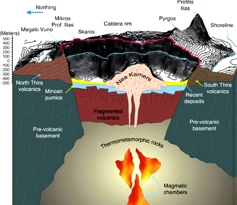 warstwą pumeksu i popiołu wulkanicznego, to na samej Thirze to zjawisko musi