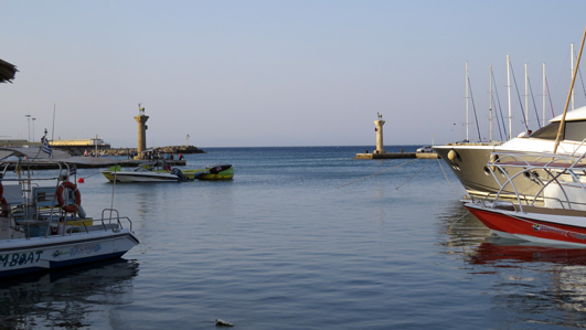 Z tymi stronami świata na Rodosie jest trochę sytuacja skomplikowana, bo nie jest on usytuowany równoleżnikowo jak Kreta czy południkowo, jak Korfu, tylko tak „po skosie” – więc wschodnie wybrzeże jest trochę przesunięte na południe, zachodnie – na północ, a południowe – na zachód… Z góry, z samolotu, wygląda jak grot strzały wystrzelonej z Libii w stronę Turcji. Podobno, bo mimo że lecieliśmy tym razem niemal w samo południe – podeszliśmy do lądowania łukiem od strony wyspy Kos i zanim się zorientowaliśmy co i jak – już siedzieliśmy na Diagorasie.
