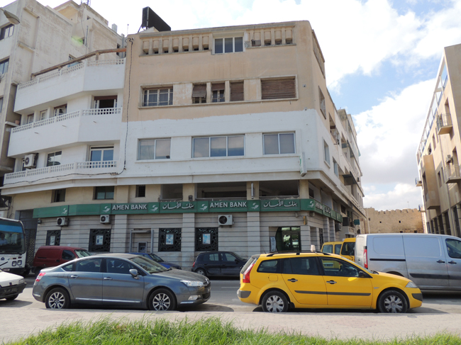 Dzielnica portowa koło "metra", z bankiem o wdzięcznej nazwie "Amen" |