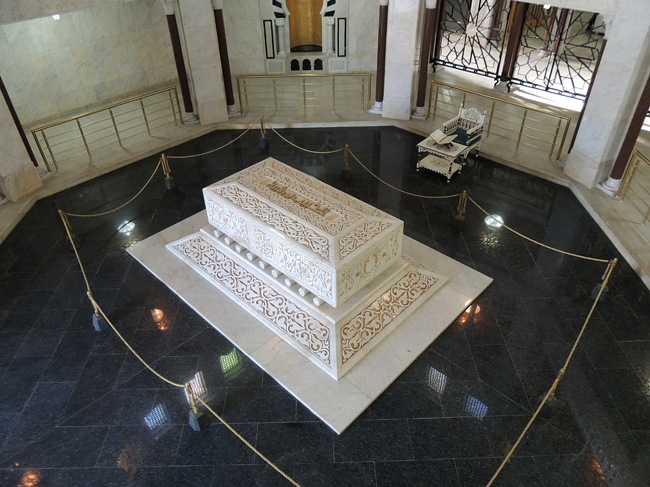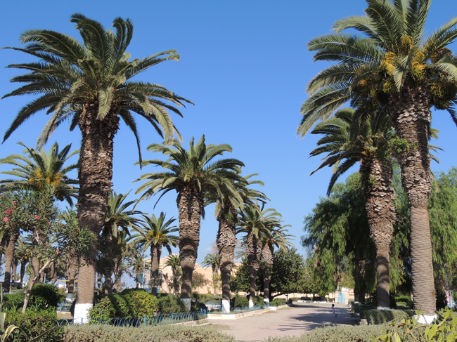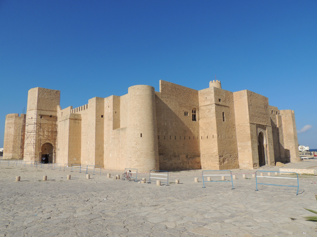 Trzeci dzień. Wstajemy o siódmej, koło 8-mej śniadanie (jedzenie bardzo dobre i zróżnicowane!), przed 9-tą na plaży. Wstęp w zasadzie wolny, ale za leżak (toporny, drewniany) i materace, roznoszone przez ponurego Nubijczyka z twarzą Ramzesa II płaci się 2 dinary od osoby (czyli jakieś 3,60 zł). W pobliżu barek (piwo lokalne, niedostępne w zasadzie na mieście poza jednym miejscem - 3,5 dinara za 300 gram), toaleta, przy hotelu basen - ale tam okropnie gorąca patelnia, nie korzystamy ani razu. Internet teoretycznie dostępny w recepcji, ale strasznie chimeryczny - na jednym fotelu jest, na drugim nie ma, a na drugi dzień może się wszystko zmienić. Po południu jedziemy na stację "metra" - jak miejscowi nazywają podmiejską kolej dojazdową. Stacja znajduje się w południowej dzielnicy miasta, pomiędzy mediną a portem rybackim. Za parę dinarów kupujemy bilet do odległego o 20 km Monastiru. Doskonała organizacja (czeka się tylko na zewnątrz, w poczekalni lub na ulicy, na peron można wejść tylko wtedy jak przyjedzie pociąg i przyjezdni wysiądą i wyjdą z dworca), ale tłok ogromny. Jedziemy częściowo przez pustynię, częściowo groblami między wysychającymi jeziorkami, na których urzędują stada flamingów, czapli i bodaj ibisów, a może marabutów. O mało nie przegapiamy stacji, ale informuje nas miejscowa ludność, że mamy wysiąść - pociąg jedzie dalej, do Mahdii. Wysiadamy i łazimy po mieście, zwiedzając medinę, obronny meczet, czyli ribat (niestety, tylko z zewnątrz, bo w remoncie) i bardzo piękne mauzoleum nieżyjącego już od kilkunastu lat pierwszego prezydenta i założyciela niepodległej Tunezji - Habiba Burgiby. Usytuowane w obrębie sporego cmentarza (zastanawiałem się, co oni zrobili z grobami, które znajdowały się wcześniej tam, gdzie dziś jest wielki plac przed mauzoleum i sam pałac, jakby skrzyżowanie Tadż Mahal i meczetu) jest bardzo pięknie ozdobione i świetnie utrzymane. I bardzo chce przypominać paryskie mauzoleum Napoleona... Wracamy znów przez miasteczko do pociągu i w Suzie przez medinę dochodzimy do centrum, gdzie odnajdujemy jedyny sklep, w którym można legalnie kupić alkohol - świetne lokalne wina w kilkunastu gatunkach, klasyczne whisky, piwo i miejscowe wódeczności. Poza niezłym syriahem kupujemy bimber z fig. Ohyda, ale niewiele gorszy od kreteńskiego raki... Kudy mu do naszej "wysokogórskiej" berbeluchy!