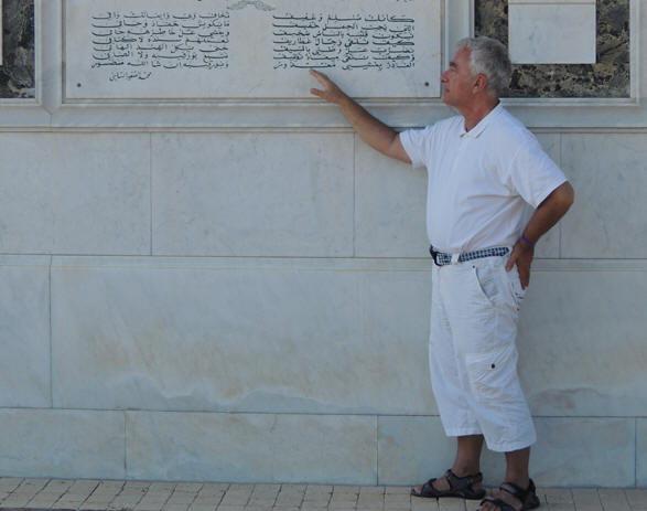 Na cmentarzu muzułmańskim zabronione są jakiekolwiek wizerunki i inne ozdoby - więc jedynymi elementami dekoracyjnymi są pięknie kaligrafowane litery i często spotykany motyw książki - jak się domyślam - Koranu |