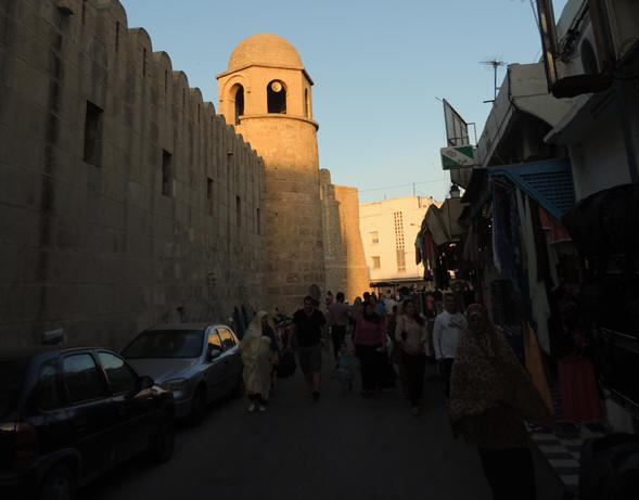 Pod wieczór w suzkiej medinie - po piątej już sprzedawcy pomału zwijają stragany |