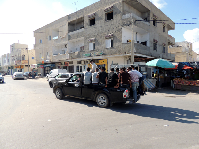 Po śniadaniu łapiemy taksówkę i za 3 dinary jedziemy na południowe peryferie Suzy, na Gare des Louages. Louage to wieloosobowa taksówka, która służy głównie do komunikacji międzymiastowej. Funkcjonalnie przypomina to nasze busy, ale zorganizowane jest o wiele lepiej, w formie czegoś w rodzaju spółdzielni. Albo mafii... Dworzec to częściowo zadaszony hangar o sporej powierzchni, w którym karnie w rządkach stoją 8-9 osobowe vany, uszeregowane wg nazw miejscowości docelowych. Poszczególne grupy miejscowości mają osobne kasy, tak że choć na dworcu kłębią się dzikie tłumy (i kierowców, i pasażerów, i rozmaitych naganiaczy i pomagierków) - tłoku nie ma, a chaos jest tylko pozorny. Gdy tylko wchodzisz na teren dworca, od razu obstępuje cię kilku facetów i pyta (oczywiście po arabsku, ale to nie ma znaczenia, mowa ciała wszystko tłumaczy) dokąd się wybierasz. Gdy podasz nazwę miejscowości - upewniają się czy na pewno dobrze zrozumieli (bo naturalnie mówisz trochę inaczej, niż oni ją nazywają) i zaraz prowadzą cię do kasy, na której jest nawet cennik i wykaz miejscowości, ale po arabsku. Powtarzasz nazwę, podajesz - po francusku czy po angielsku - liczbę osób i dostajesz bilety. Które natychmiast ktoś inny ci odbiera (albo całkiem, albo odrywa część), ktoś jeszcze inny prowadzi do twojego luaża. Tam kierowca usadza cię w środku i albo, jeśli to ty dopełniasz liczby pasażerów - od razu odjeżdżasz, albo czekasz, aż uzbiera się komplet.
