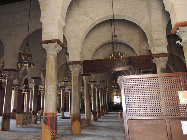 Okropny upał. Choć w prostej linii jesteśmy oddaleni od morza zaledwie o 52 km - czujemy się jak na Saharze. To rzecz jasna osłabia naszą aktywność turystyczną. Zwiedzamy Wielki Meczet, który nie robi na mnie wielkiego wrażenia. Może dlatego, że dostaję się w szpony miejscowych zdzierców: bilet kosztuje 10 dinarów, plus dodatkowa opłata za fotografowanie. Co prawda upoważnia on do zwiedzania, poza Meczetem, kilku innych obiektów w mieście, ale od razu wiem, że raczej z tego nie skorzystam. Doczepia się do mnie miejscowy przewodnik, stojący obok kasy, a więc uważam go za dodatek do prawa wejścia. Marszobiegiem podążam za nim i wysłuchuję monologu po francusku, nawet trochę się dopytuję. Ale tak naprawdę oglądanie kapiteli każdej z 414 kolumn, wspierających krużganki i strop meczetu nie jest specjalnie fascynujące, zwłaszcza że wiem (czego przewodnik nie mówi), że są one zrabowane z rzymskich, a nawet fenickich zabytków znajdujących się w Tunezji. Imponujące są wielkie drzwi z libańskiego cedru, prowadzące do wnętrza kilkoma wejściami (osobne dla mężczyzn, osobne dla kobiet), ciekawe dwa zegary słoneczne wyskalowane tak, by pokazywały godziny, w których muezin przypomina o modlitwie, a także wielka, ukryta pod ziemią cysterna zbierająca deszczówkę na potrzeby ablucyjne. Wejść do meczetu nie wolno - akurat trwa tam remont, wszystkie dywany suszą się w krużgankach, więc tylko z daleko oglądam mihrab, na przewodniku mówiącym mi, że nisza ta wyznacza kierunek do Mekki nie robi wrażenia, że nazywam to po arabsku kibla, pewno wszyscy jego klienci robią to samo. Stanowczo odmawiam wejścia na szczyt minaretu i dziękuję mu za oprowadzanie mówiąc, że chcę się w samotności pomodlić. Wyciąga rękę w kształcie miseczki. I nie zadowala się zwyczajowymi dwoma dinarami, tylko odsysa ode mnie osiem - stanowczo odmawiam dalszego transferu - więc odchodzi mocno niezadowolony. Ja też. Wiem, co prawda, że te 10 dinców za wstęp to niespełna 20 złotych, a osiem to koło 15-tu, więc niby niewiele. Ale nie lubię, jak mnie ktoś nabiera. Inna rzecz, że za lekcję francuskiego u mojej własnej koleżanki ze szkoły musiałbym zapłacić 50 złotych za godzinę, czyli coś koło 25 dinarów...