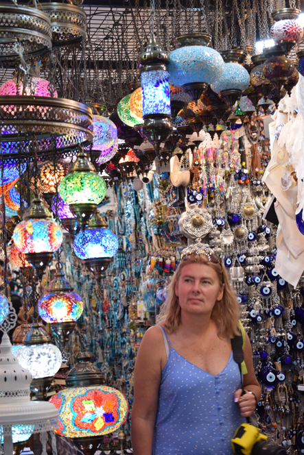 kolorowe lampy. Targowanie trwa długo, czemu sprzyja fakt, że sprzedawczyni jest