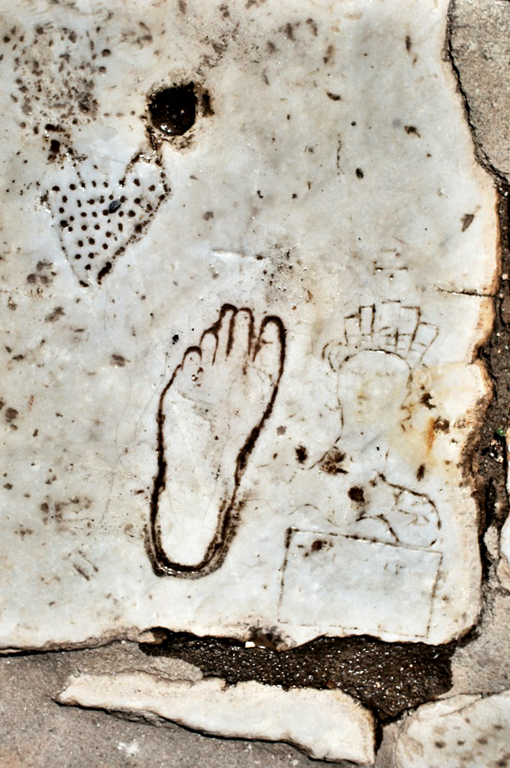 marmurowych płyt, oznaczają miejsce, gdzie podobno dwa tysiące lat temu spoczął