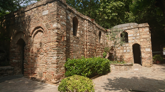 łaźni z okresu bizantyjskiego, a droga odchodząca w tym miejscu od głównej ulicy