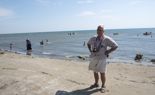 plażę i ludzi, wyglądających jakby chcieli pieszo przejść na Samos. Odpoczywamy