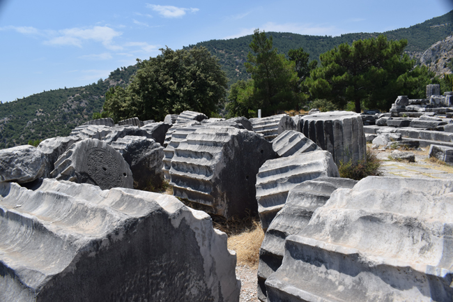 kamieniołomie na zboczach góry Mykale, a wykańczane drewnem z pobliskich lasów.