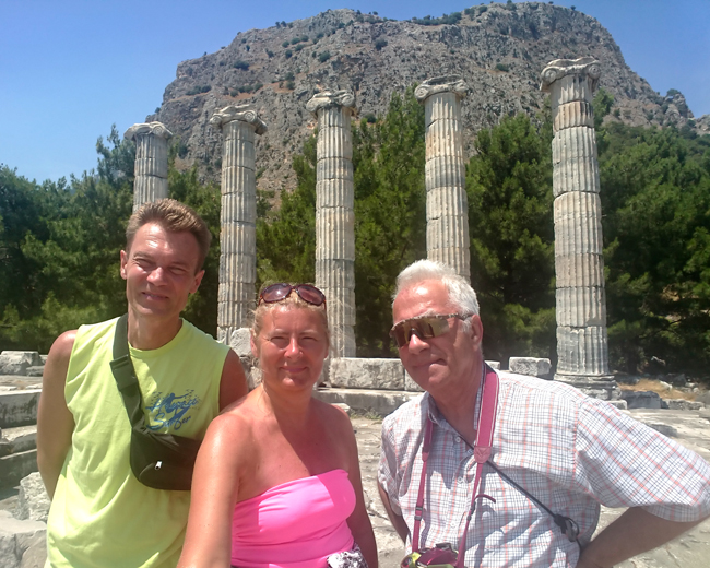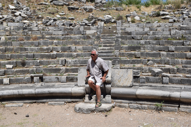 przed bramą prowadzącą na teren antycznego miasta Priene. Jest gorąco i duszno,