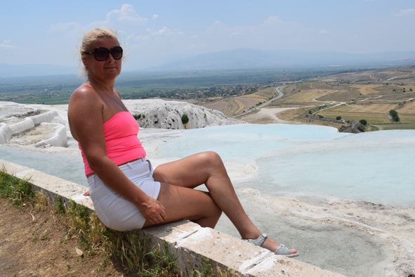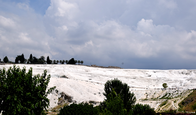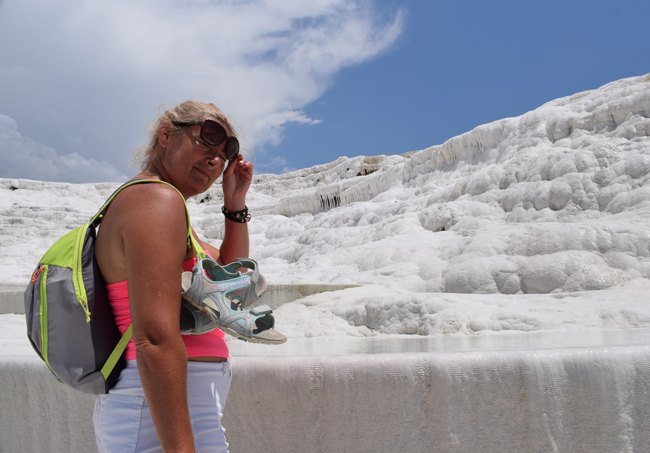 wydaje się nie do zniesienia. Wrażenie gorąca powiększa fakt, że cały masyw Pamukkale jest tak jasny, że wygląda jakby był usypany z soli. Albo ze śniegu.
