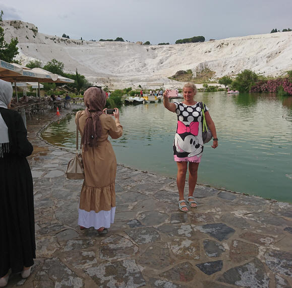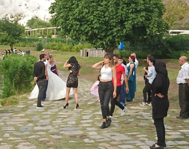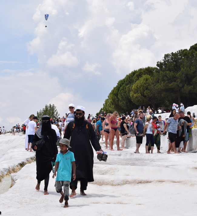 inni od góry schodzą do Pamukkale. Na oko większość to Turcy, ale jest też sporo