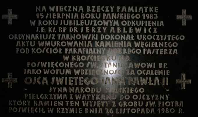 Nowy Kościół jest rzeczywiście nowy, budowany na naszych oczach i przypominający nieco zakopiański kościół Św. Krzyża, i słusznie, bo o ile się nie mylę, projektował go ten sam prof. Witold Cęckiewicz. Na tablicy informacyjnej tego nie ma - można wyczytać tylko, że: