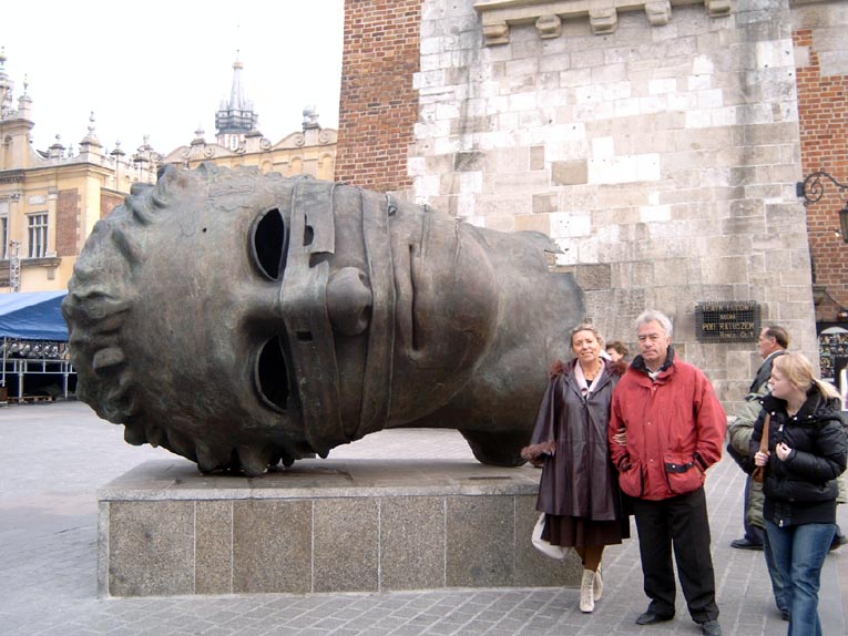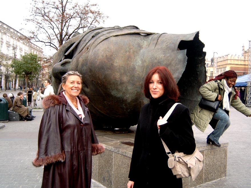 Lidka i Maciej przed rzeźbą Igora Mitoraja na Rynku |