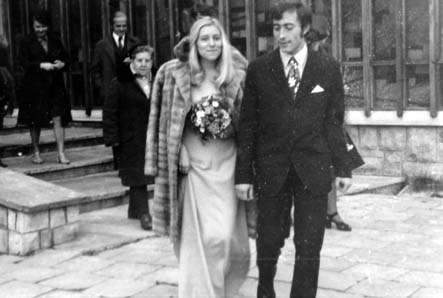 Poniżej wychodzimy z Urzędu, za nami babcia i państwo Mikowie. Ślubu nam udzielał kierownik USC pan Józef Garlacz, jeden z lepszych aktorów Towarzystwa Miłośników Teatru im. Heleny Modrzejewskiej. Wesele - skromne, na zaledwie kilkanaście osób, mieliśmy w "Murowanej Piwnicy" hotelu "Orbis-Giewont".
