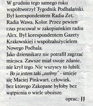 Tygodnik Podhalañski nr 45/877, z dnia 9 listopada 2006, str. 2, autor: Jerzy Jurecki