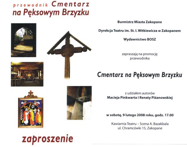 W sobotę, 9 lutego o godz. 17 w Teatrze Witkacego jest promocja przewodnika "Cmentarz na Pęksowym Brzyzku". Nie namawiam ani nie zachęcam, po prostu informuję... Wstęp wolny, więc oszczędni mogą przyjść i nawet nie muszą kupować książki, opowiem...