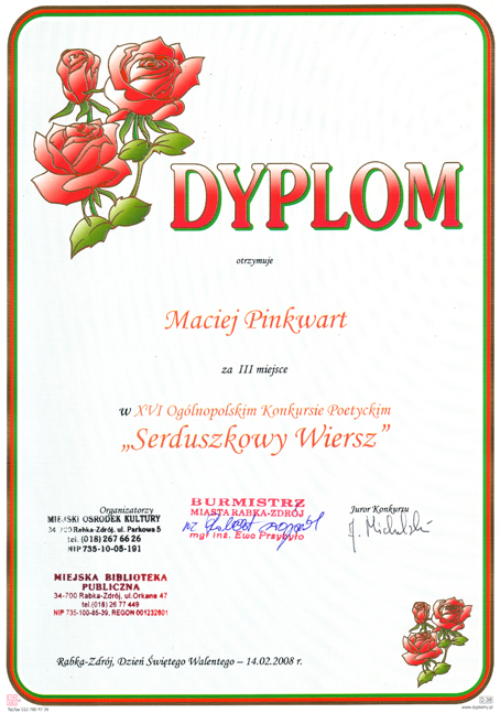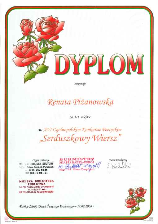 kraju oboje zajęliśmy trzecie miejsce - ex aequo. Renatka za wiersz