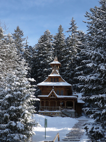 wreszcie Dom pod Jedlami, też ładny zimą. Oszczekał nas pies z