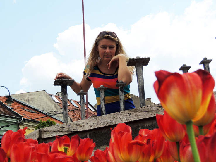 w ostatniej chwili, bo już przekwitały, czerwone tulipany przy pomniku