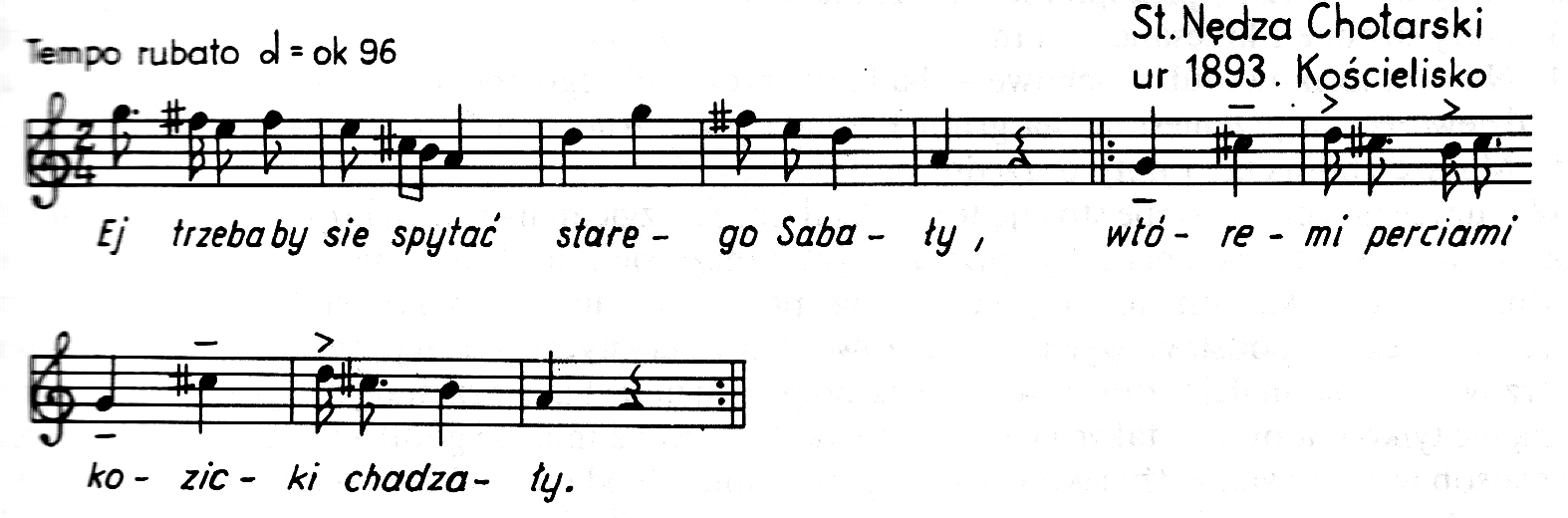 Nieco później, w latach 80. XIX wieku, Jan Kleczyński notuje, że w niektórych tylko melodiach przebija zupełnie już samodzielność i charakter wyłącznie okolicom podhalskim właściwy.