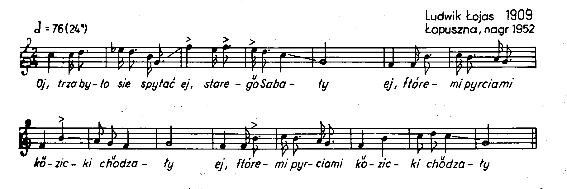W antologii Pieśni Podhala ta sama nuta śpiewana jest zupełnie inaczej przez Ludwika Łojasa z Łopusznej: