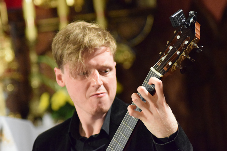 I kiedy już się tak wzajemnie poinspirowaliśmy, Oskar Kozłowski kazał nam przenieść się (duchowo, oczywiście) do Ameryki Południowej, bo na zakończenie koncertu usłyszeliśmy świetne i wirtuozowskie, ale nieco akademickie w swej nowoczesności utwory współczesnych kompozytorów brazylijskich Paolo Bellinattiego (Baiao de Gude) i Celso Machado (Tańce brazylijskie). Zrobiło się wręcz gorąco, perkusyjnie i nawet za okiennymi witrażami przestał padać. A na bis usłyszeliśmy Polkę na cztery gitary - i choć Oskar Kozłowski nie zdradził nazwiska kompozytora, z pewnością był to Paragwajczyk Félix Pérez Cardozo (1908-1952), wielki wirtuoz gitary i harfy paragwajskiej, osiadły potem w Argentynie i zmarły w Buenos Aires. I ową Polca Paraguaya, czeską polkę napisaną przez Paragwajczyka w Argentynie poniosło echo od Polanicy po Bryjarkę, a my pełni wrażeń pożegnaliśmy już na dobre gościnne progi kościoła świętego Wojciecha, bo finałowy, koncert festiwalu, na którym wystąpi Tatrzańska Orkiestra Klimatyczna, odbędzie się 23 lipca 2016 w Dworku Gościnnym w Szczawnicy o godz. 19.00.