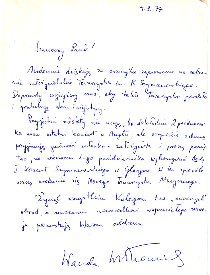 Szymanowskiego w Szkocji, ale od tego czasu utrzymywaliśmy kontakt listowny. Na