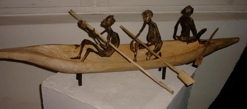 Wioślarze, brąz, drewno